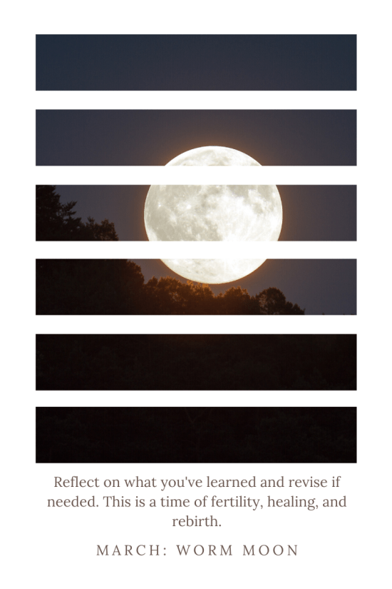March’s full moon is the Worm Moon, also known as the Sap Moon. It occurs around the spring equinox. It heralds in the beginning of spring, with the earthworms wriggling their way up to the surface once again, gracing our gardens with all their lovely work, hence the name. This is a time of fertility, […]